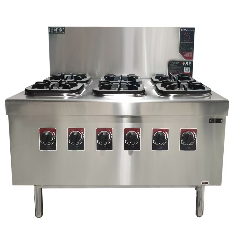 炉面板采用优质不锈钢板。炉体骨架选用40X40X4mm角铁焊接制作并加防锈漆, 炉头支架250X250mm结构坚固,外形美观简洁。每个炉面燃烧器都配置独立控制开关。配有安全点火棒一支。