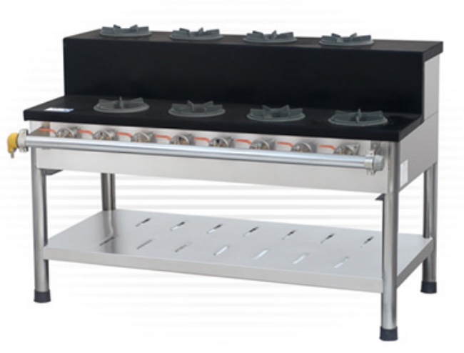 炉面板采用优质不锈钢板。炉体骨架选用40X40X4mm角铁焊接制作并加防锈漆, 炉头支架250X250mm结构坚固,外形美观简洁。每个炉面燃烧器都配置独立控制开关。配有安全点火棒一支。