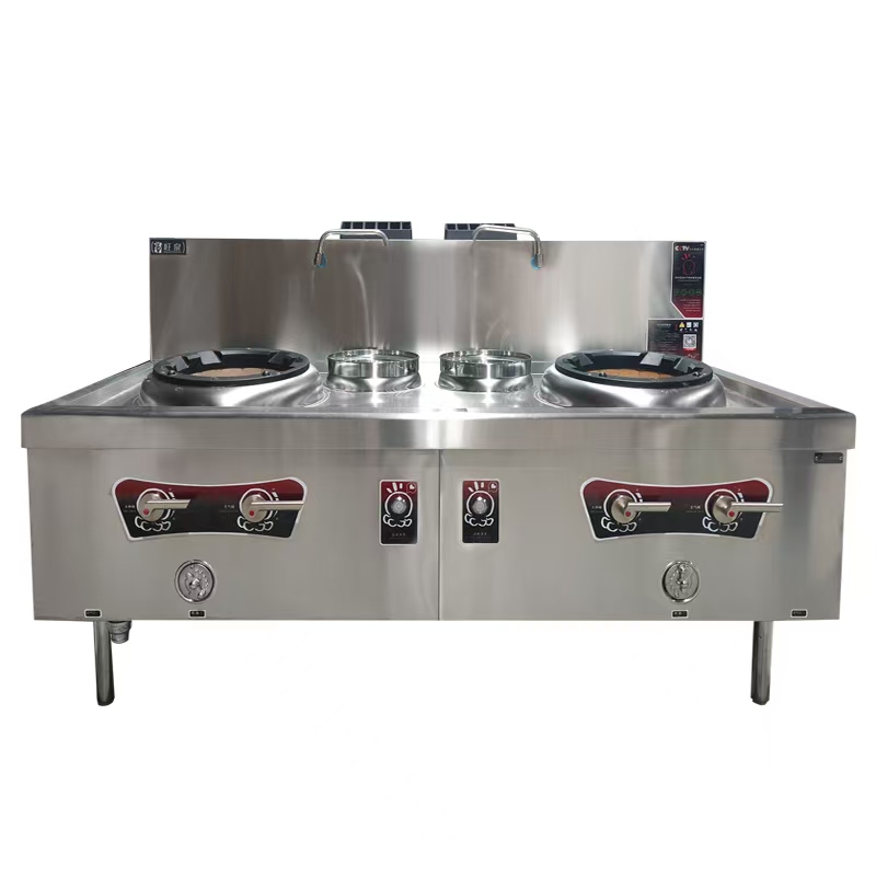 (2)炉外结构选用优质不锈钢板,上设优质摇摆水龙头,可配置炸筐架及不锈钢调料板,并可根据需要订做,可设计自然风式。